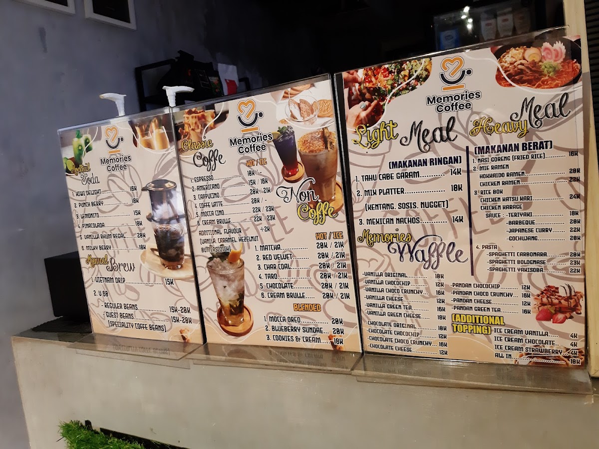 Memories Coffee Menu